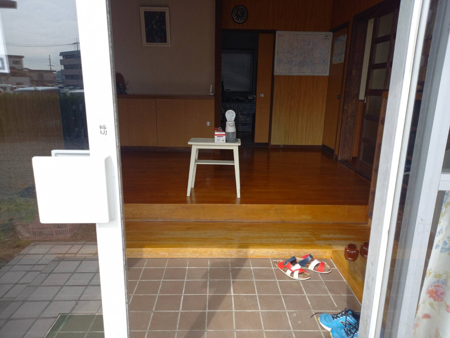 玄関で靴からスリッパに履き替え、必要な方はアルコール消毒やマスクをお使いください。玄関入って右側が、礼拝堂です。